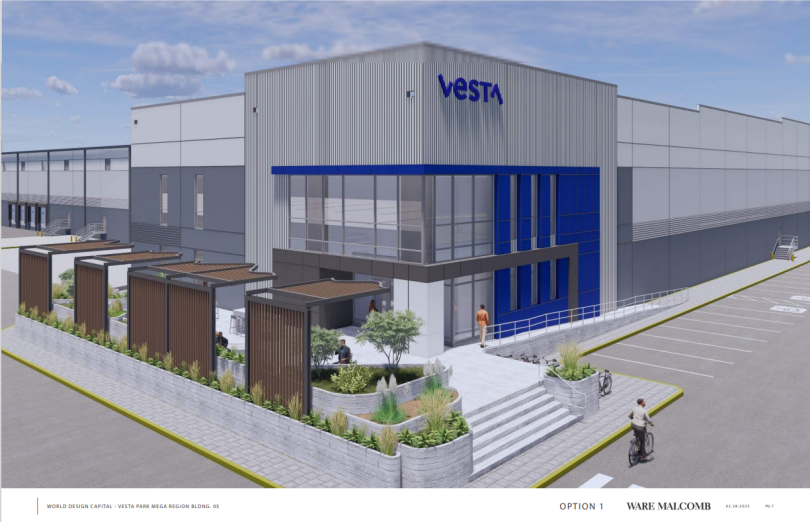 Vesta participa proponiendo un edificio industrial diseñado con innovación para la mejor operación de sus futuro(s) inquilino(s), así como para el confort y bienestar de los trabajadores del mismo, con soluciones nunca antes pensadas en el diseño, la construcción con materiales sustentables y en el que se logra armonía visual y estética con magnífica funcionalidad. Además, el edificio será certificado LEED.